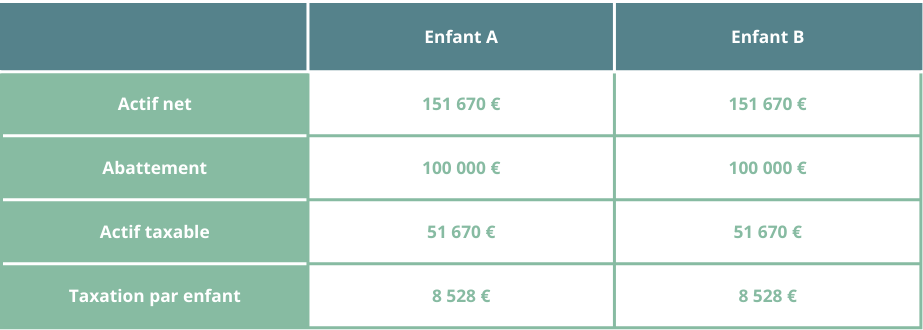De plus, chaque descendant bénéficie d’un abattement de 100 000 €, renouvelable tous les 15 ans; qui vient limiter la taxation finale.